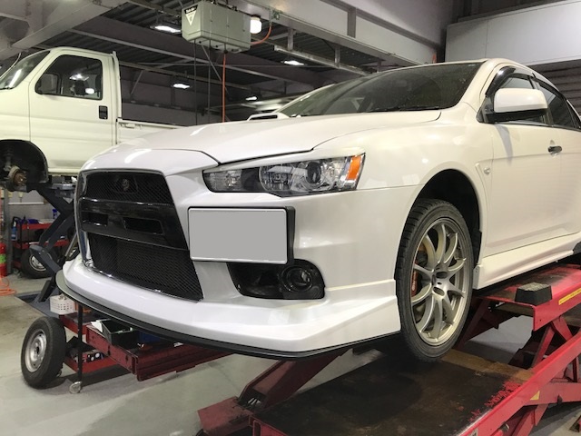 T様エボXにフロントスポイラーを取付して