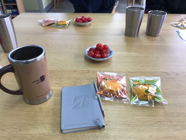 K様より頂いたサクランボを朝ミーティングで