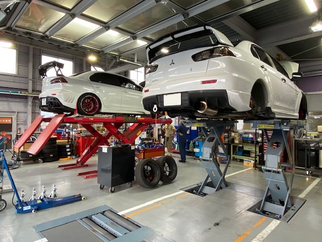 右はオイル漏れ修理中のT様エボX