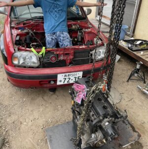 とりあえずエンジンを取り外さなくてはならず