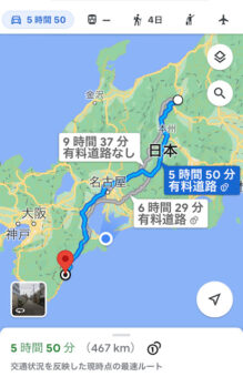 走行ルートを検索して500km無いと