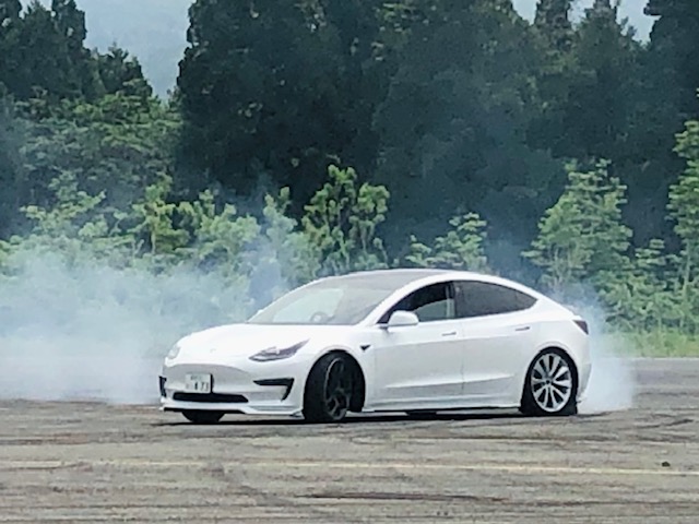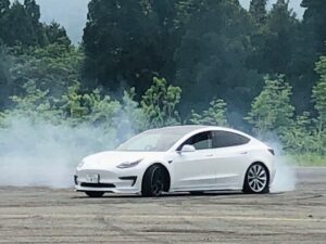 テスラは、左右のふどちらかのタイヤが空転してしまいます。