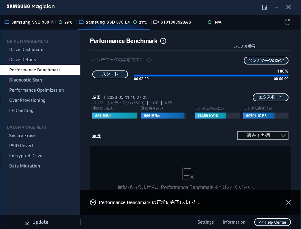 交換前のSSD870パフォーマンスレポート