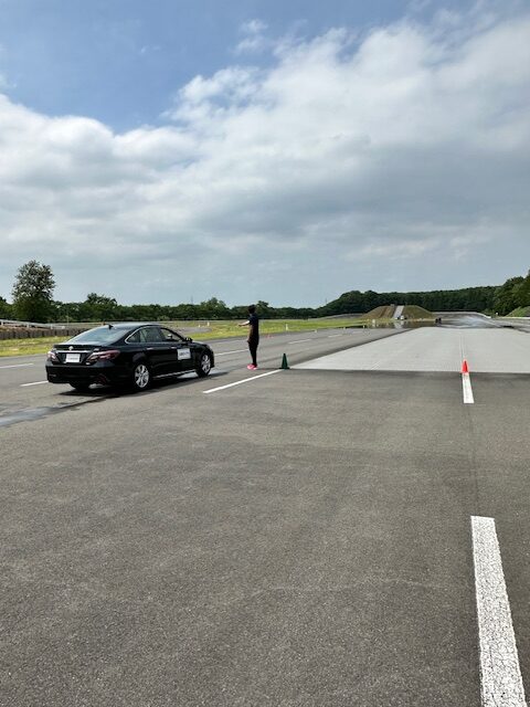 その後フルブレーキングをして制動距離を機械で測ります。