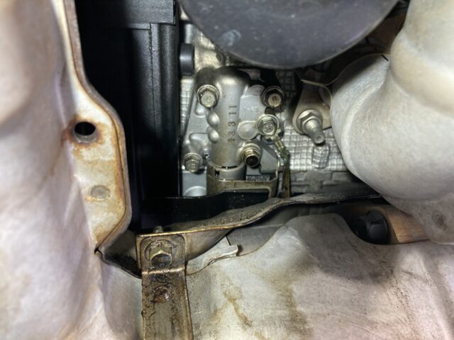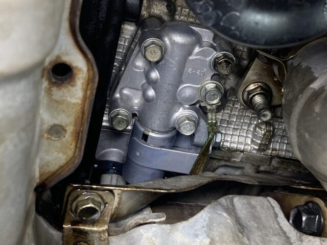 まずはエンジンオイル漏れですが、漏れ箇所は右バンクのエキゾーストオイルフローコントロールバルブ