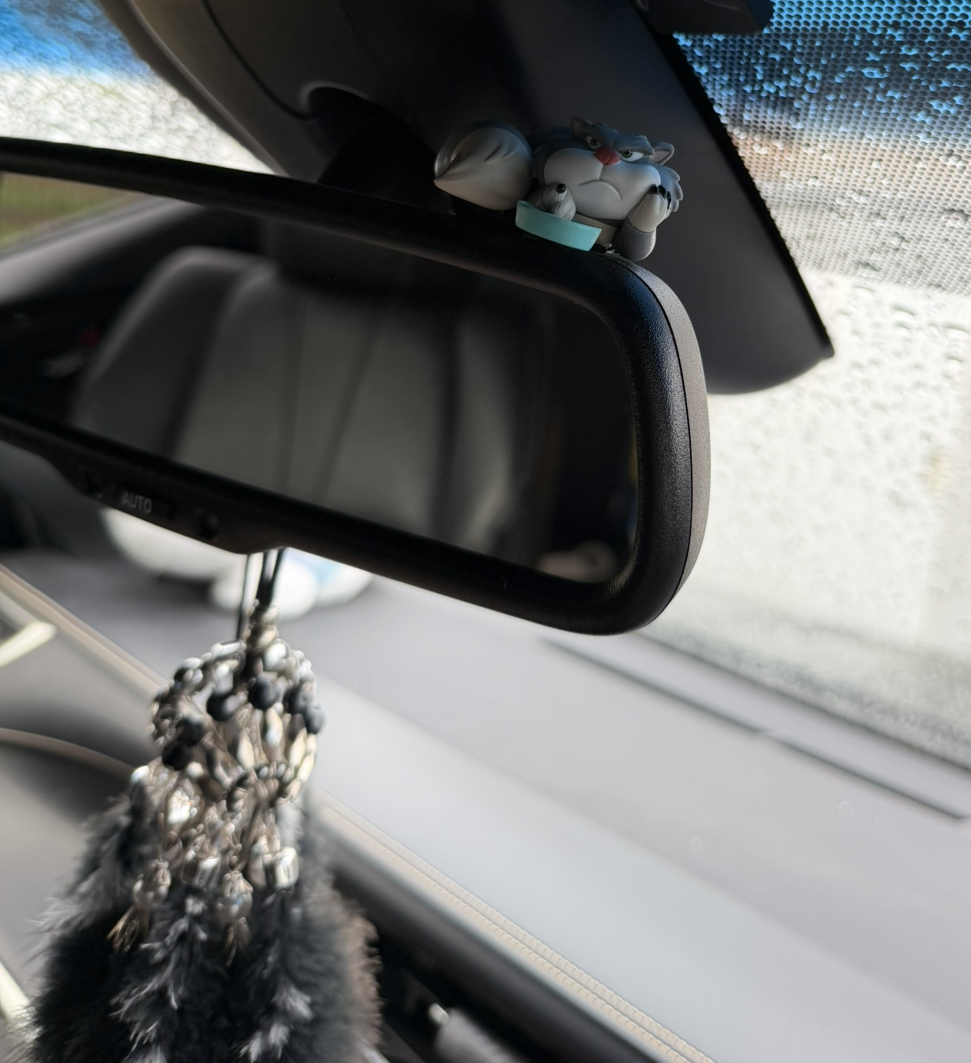 そして、最後はバックミラーの上にルシファーがついてるんです!
