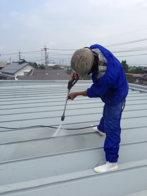 古い塗膜や汚れを高圧洗浄機で綺麗に除去してますが