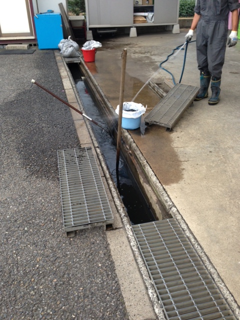 工場の入り口にある排水路ですが、下回りを洗車した時に