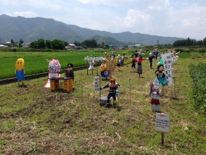 田んぼに沢山の案山子を発見!