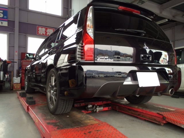 マッドフラップ取付で Y様エボワゴンが入庫しました。
