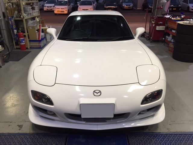 週末納車予定のU様RX-7に車高調を取付です。