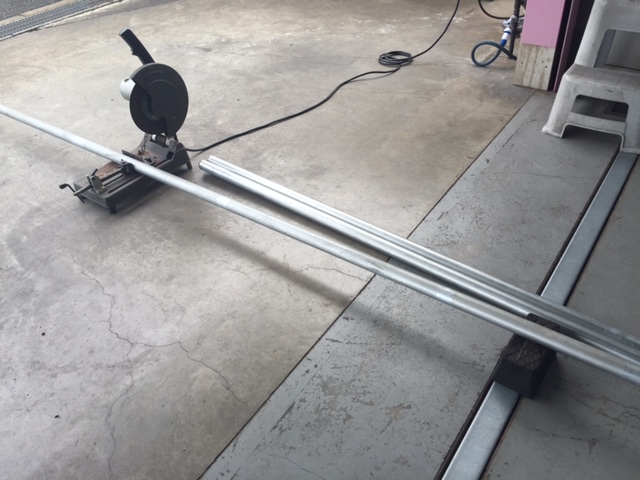 現在のラックは横幅2mなので4mの単管を半分に切断します。