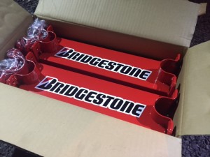 このラックは単管とブリジストンから販売されているアダプターと