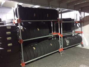 タイヤ倉庫にあるタイヤラックを2段から3段に変更しました。