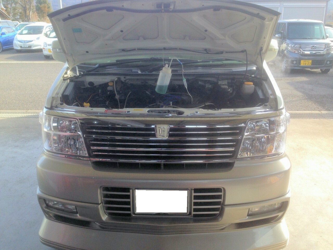 伊那市より S様ランサーのオイル交換と ご友人様エルグランドがRECS施工で ご来店いただきました!