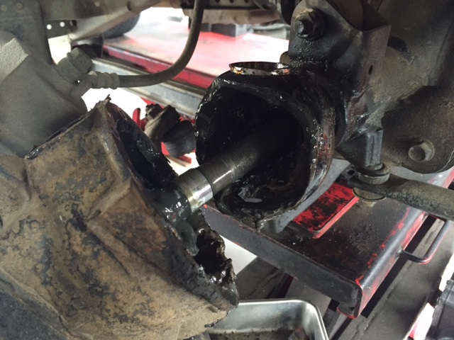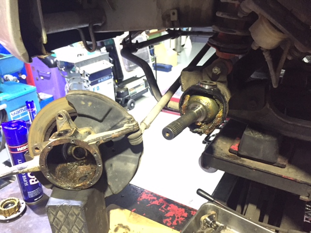 ハブとドライブシャフトも外して作業します。