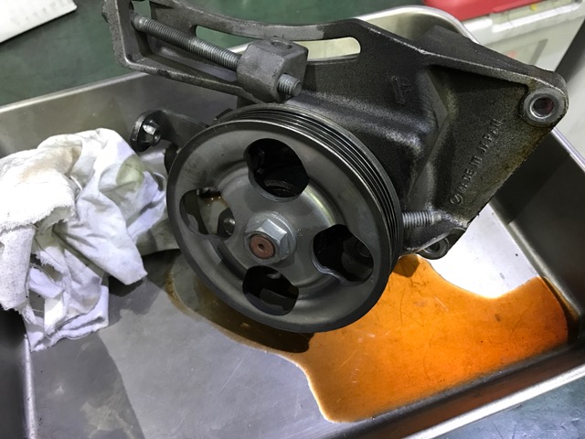 点検すると、パワステポンプよりオイル漏れです。
