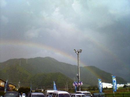 最近流行のゲリラ豪雨なんでしょうか? 昨日に続き短時間に雷と大雨が集中砲火でしたね(^^; 雨上がりに虹が見えたなぁ~と思っていたら2重になって 見えたので思わず写真撮っちゃいました。