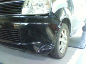 急に道路へ飛び出してきた黒い物?と衝突してバンパーが・・・(^^;