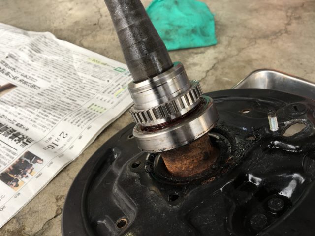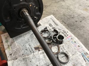 リヤブレーキをバラしてスライドハンマーでシャフトを抜きます