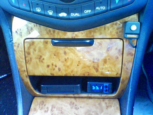 エンジンルームから配線を室内に引き込んで、センターコンソールに取付してました。