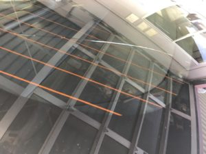 リヤガラスのトランク付近からルーフに向かって