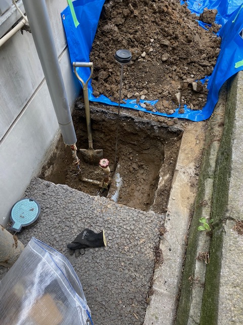 地表から約60cmの場所に水道管が埋められて