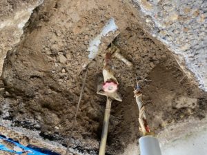 6月に不凍栓の周りを掘って頂くと「ポタポタ」と水漏れ発見。