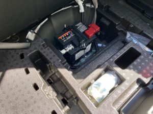 パンク修理剤、補機バッテリーが収納されてます。
