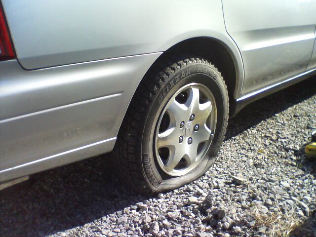 オデッセイのY様から、職場の駐車場に着いたらパンクしてた
