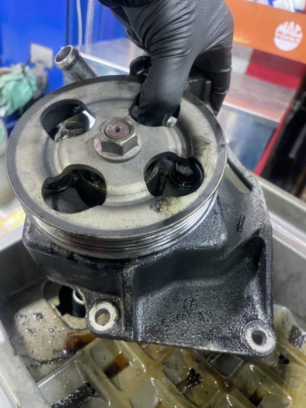 まずはパワーステアリングのポンプですね。