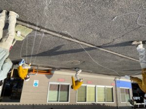 会長に借りた振動ドリルでアスファルトに穴あけしますが