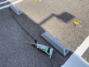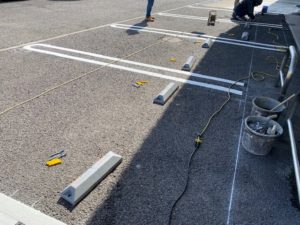 駐車場に白線と輪止めの施工しました。