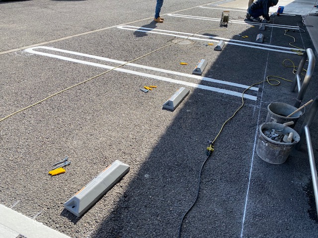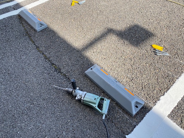 白線はプロにお任せしましたが、輪止めは私が取付しました!