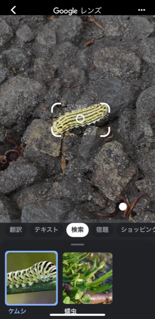 Googleレンズの検索結果・・・「ケムシ」