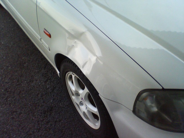 車の右フロントフェンダーが凹んでいました(^^;