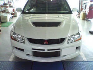 さて、本日の作業ですがF様ランサーエボWが車検で入庫です。