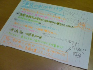 お土産を選んで欲しいと置手紙が・・・