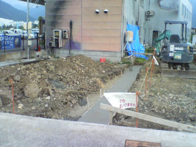 フェンスを立てるので土留めを作ってます。
