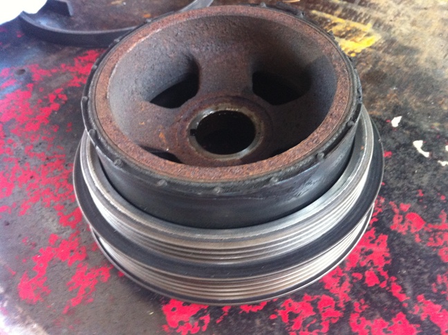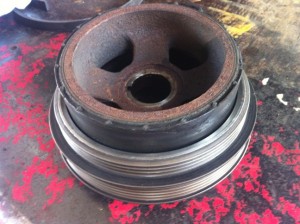 クランクプーリーが分解してベルトの位置が