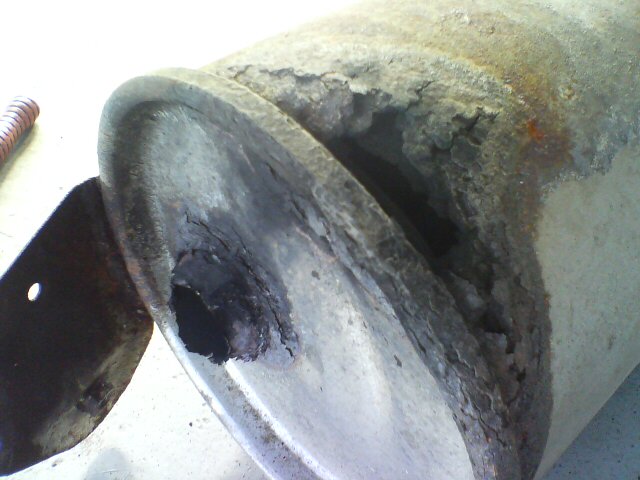 サイレンサーの出口付近が錆でボロボロ。