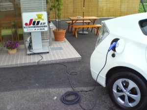 店先で100Vコンセント使って充電してみました。