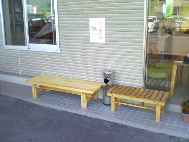 喫煙者の方、是非新しいベンチで一服して下さい。