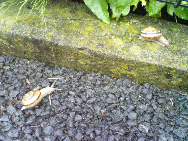 今日は朝から雨でしたが、展示場でカタツムリを