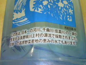 川上村の源流で採取された天然水で