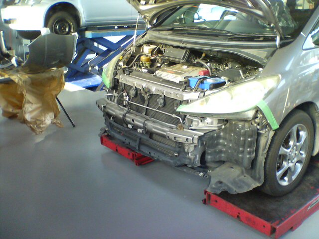 幸いにもフロントのバンパー交換だけで済みそう。