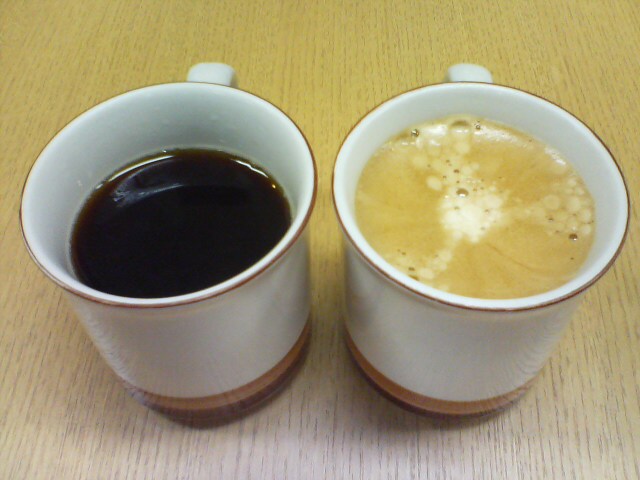 もちろん左がインスタントコーヒーにお湯入れただけ。