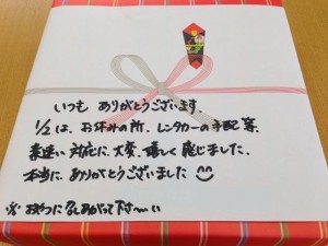 会社でレンタカーを引き渡してくれたので、お客様も